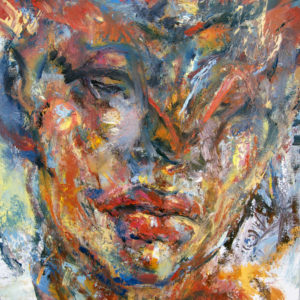 Judy Volkmann Shaman Portrait 2018 Oil and oil stick on wood panel 12x12in