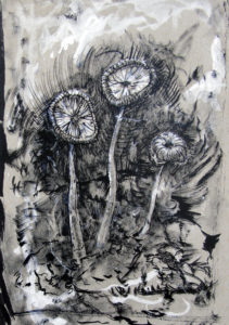Volkmann Judy Dancing Mushrooms 2018 Ink on paper mounted on archival board 10x8in 14 September 2018Judy Volkmann