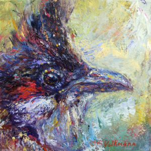 Volkmann Judy Red-whiskered Bulbul 2018 oil and oil stick on canvas 10x10in 28 September 2018Judy Volkmann