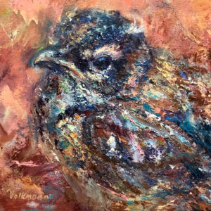 Volkmann Judy Fledgling Robin 2018 oil and oil stick o canvas 10x10in