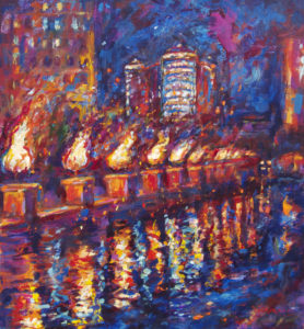 Volkmann Judy WaterFire Providence, Rhode Island 2019 acrylic on paper 20.625x19in 1 August 2019Judy Volkmann