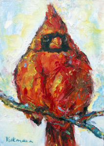 Volkmann Judy Northern Cardinal on a Branch 2020 oil on wood panel 7x5x1.5in 4 April 2020Judy Volkmann