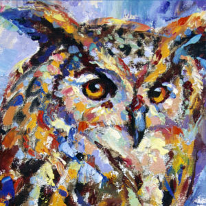 Volkmann Judy Eurasian Eagle Owl III 2020 oil on wood panel 4x4in
