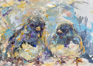 Volkmann Judy Dark-eyed Juncos 2021 oil on wood panel 5x7in