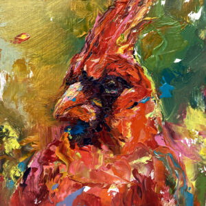Volkmann Judy Northern Cardinal 2021 oil on cradled wood panel 4x4x1.5in