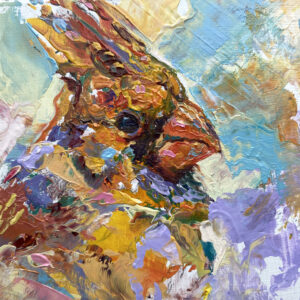 Volkmann Judy Northern Cardinal (female) 2021 oil on cradled wood panel 4x4x1.5