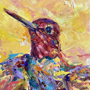 Volkmann Judy Hummingbird in Flightt 2021 oil on cradled wood panel 4x4x1.5in 7 October 2021Judy Volkmann