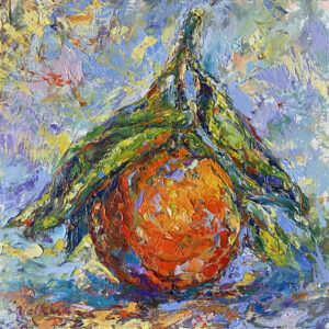 Volkmann Judy Mandarin with Leaves 2022 oil on cradled wood panel, 8x8x1in 10 February 2022Judy Volkmann