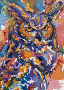 Volkmann Judy Great Horned Owl 2022 oil on wood panel 7x5in