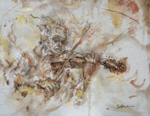 Volkmann Judy Violinist #2 2022 commission oil and charcoal on canvas 11x14in 15 June 2022Judy Volkmann