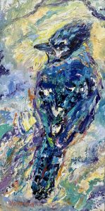 Volkmann Judy Bluejay 2023 oil on panel 8x4x1in
