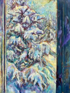 Volkmann Judy Narnia, Blue Spruce in Winter 2023 oil on canvas 40x30in