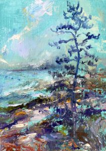 Volkmann Judy Solitude (tree) 2023 oil on cradled wood panel 7x5in