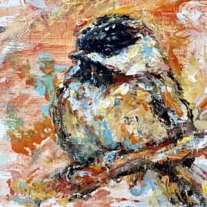 Volkmann Judy Little Chickadee 2024 acrylic on cradled wood panel 4x4x1.5in 10 January 2024Judy Volkmann