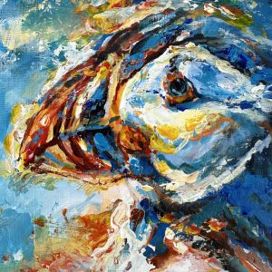Volkmann Judy Atlantic Puffin #2 2023 acrylic on cradled wood panel 4x4x1.5in 7 May 2024Judy Volkmann