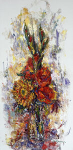 Volkmann Judy Sunflowers and Gladiolus in Vase #2 2023 oil on canvas 24x12x1.5in 6 September 2024Judy Volkmann
