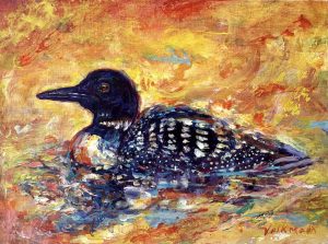 Volkmann Judy Lazy Days of Summer-Loon 2025 acrylic on cradled wood panel 6x8x1.5in 18 July 2025Judy Volkmann