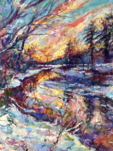 Winter Sunset on Burnt Meadow Pond by Judy Volkmann