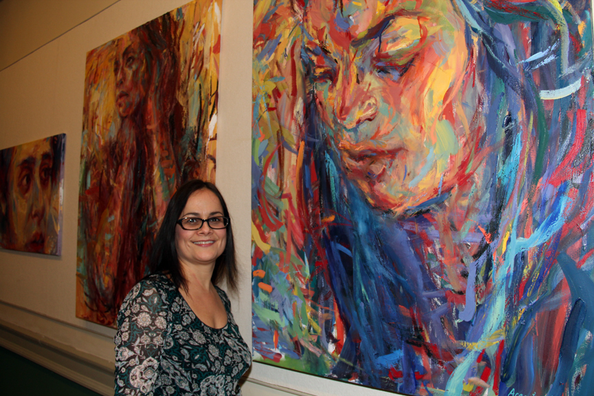 Uncategorized Opening Night @ The Central Gallery 5 January 2013Judy Volkmann Judy Araujo Volkmann standing in front of her featured painting, Insight during opening night at The Central Gallery in Providence, RI. photo by Jim Scott