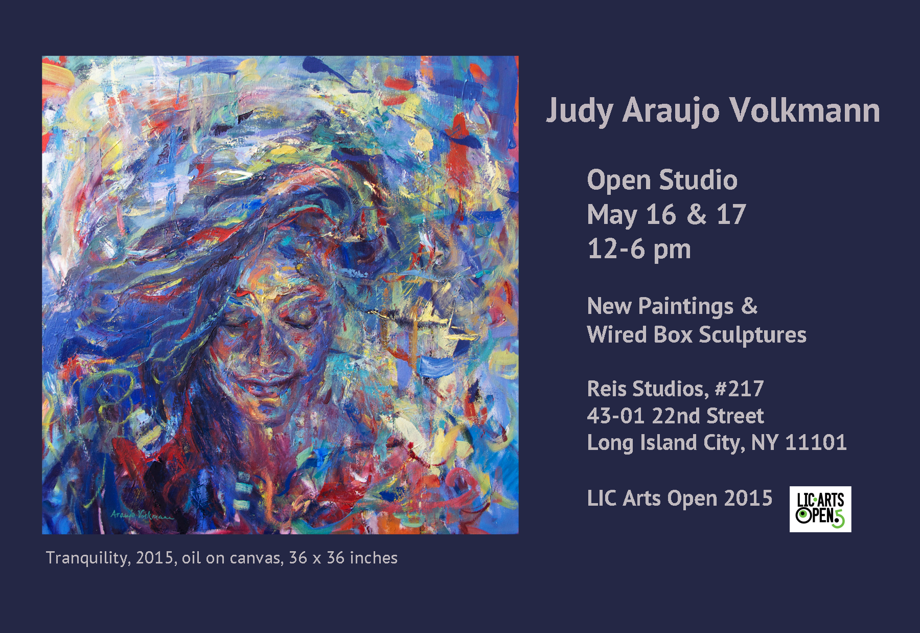 Judy Araujo Volkmann will be opening her Long Island City studio in Queens as part of the Reis Open Studios annual event. Her open studio exhibit entitled ‘New Paintings and Wired Box Sculptures’ will feature her expressive portrait paintings and sculptures.