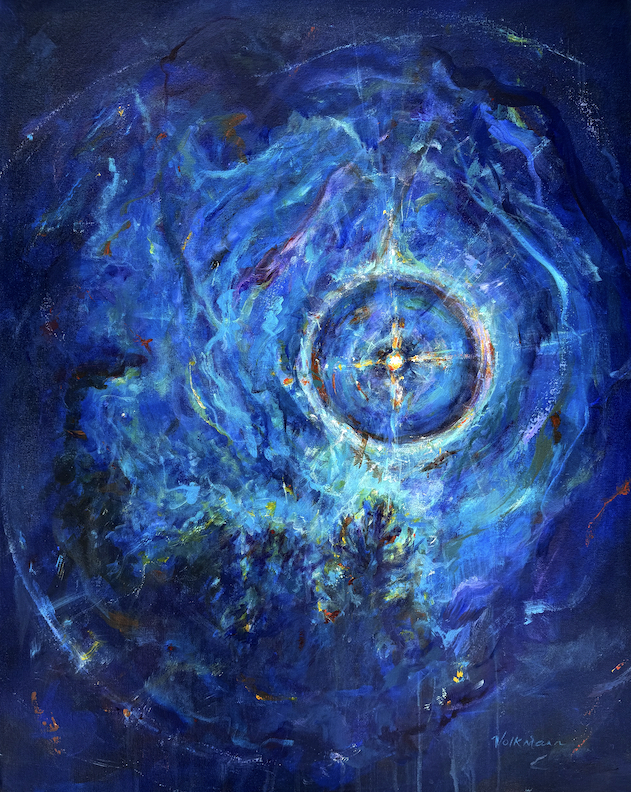 ©Judy Volkmann, Nebula, 2024, acrylic/oil on canvas, 16 x 12 in, $650 at Sarah Jessica Fine Arts in Provincetown, MA (508) 487-0884
