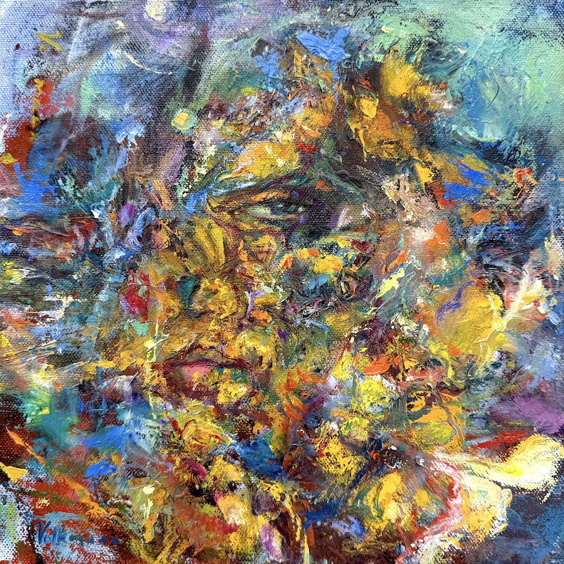 ©Judy Volkmann, Metamorphosis #2, 2026, oil on canvas, 8 x 8 x 1.5 in, $350 Available